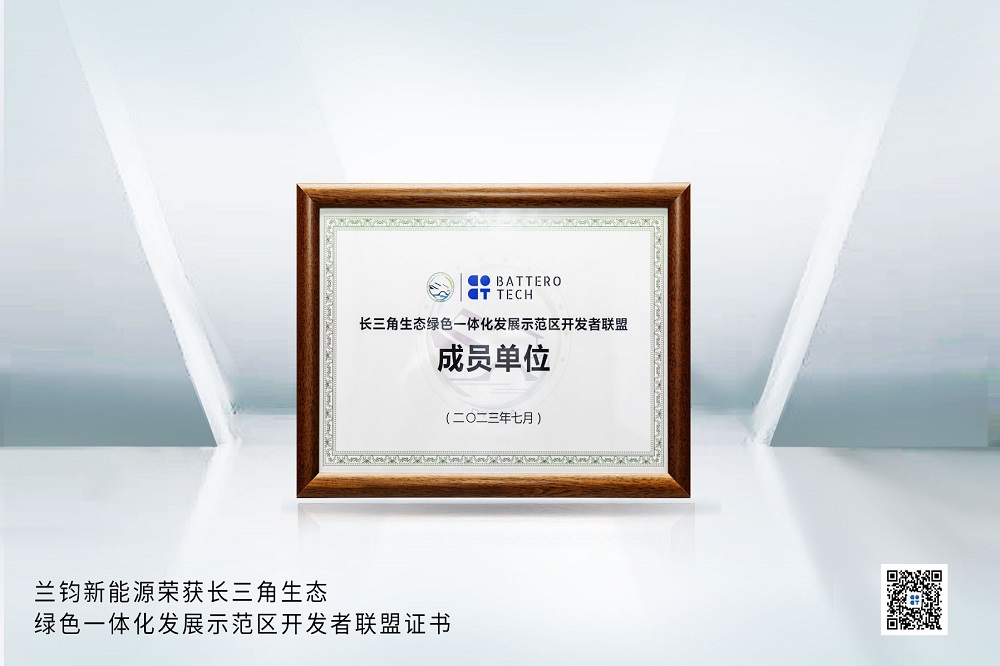 7月31日,以“跨域一体、开放共赢”为主题的2023年长三角生态绿色一体化发展示范区开发者大会暨全链接大会,在国家会展中心(上海)举行,上海市委书记陈吉宁出席并致辞,兰钧新能源科技有限公司作为新加入开发者联盟的13家企业和机构代表之一上台领取授牌。