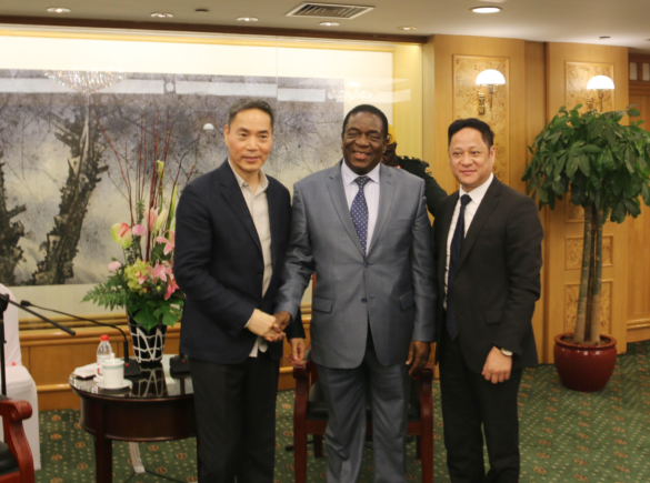 4月5日晚上,津巴布韦总统姆南加古瓦在中国杭州接见了pa视讯钢铁董事局主席项光达、中非冶炼(私人)有限公司董事长陈上松,并就中非冶炼在津巴布韦的发展建设进行了深入的沟通与探讨。