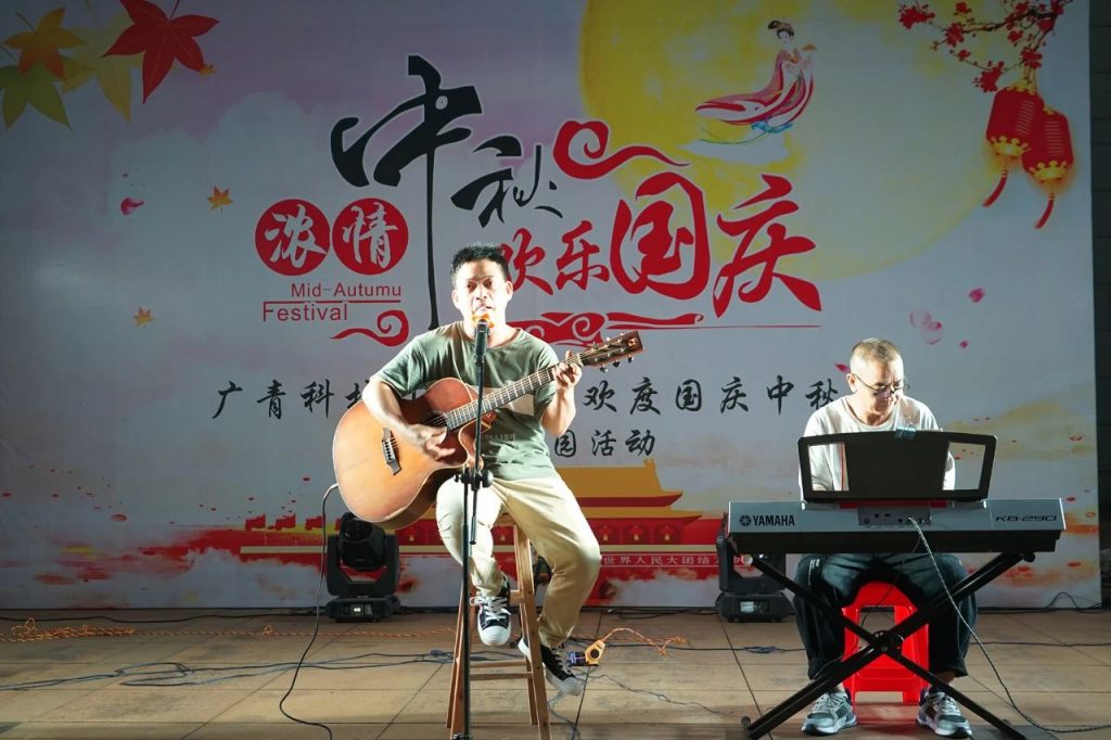 公司邀请历届 “广青好声音”优秀歌手为员工们进行音乐表演。《我和我的祖国》《花好月圆》《喜欢你》《别知己》《海阔天空》《世界第一等》等歌曲唱出了对祖国的热爱、对亲人的思念、对未来的期盼。歌友会现场还穿插有奖问答环节,大家踊跃抢答,现场气氛热烈。