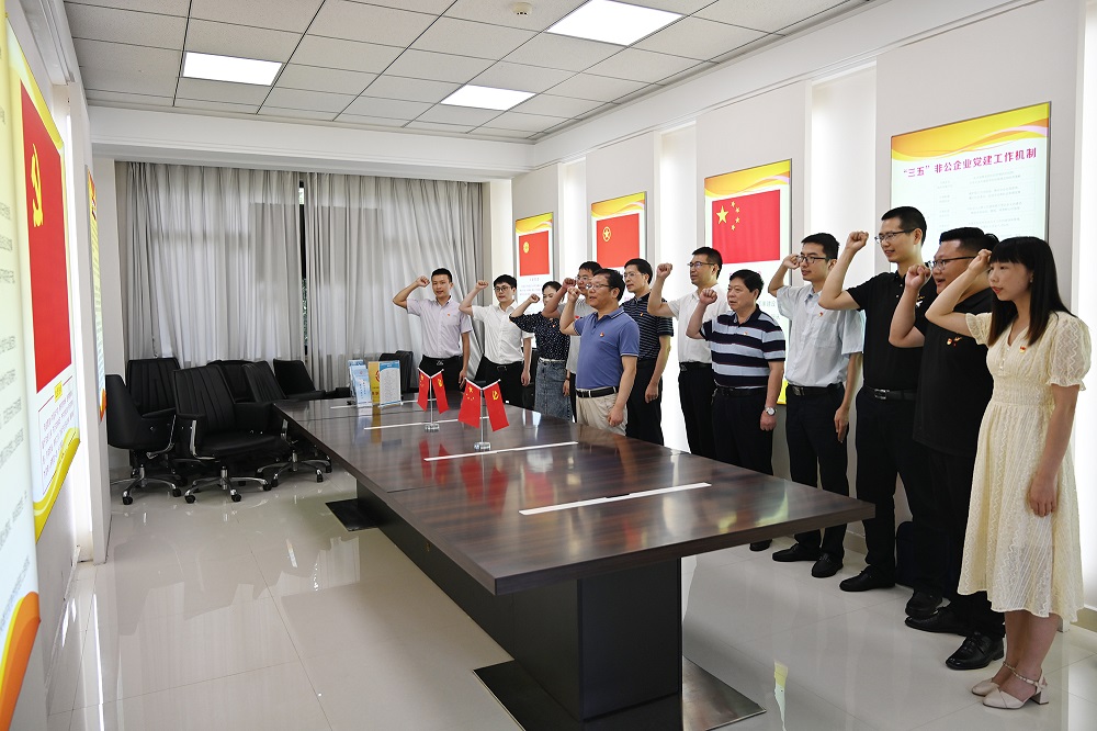在青拓集团党建工作室,冯华伟对青拓集团党建工作新方式进行了了解,并带领支部人员与青拓集团党员代表重温入党誓词,牢记党员使命,时刻提醒自身要始终发挥党员先锋模范带头作用,服务职工,服务集体。